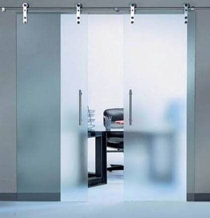 Las puertas correderas de cristal se pueden instalar con guías vistas como en la imagen anterior o con una celosía para tapar la guía en caso de no querer verla