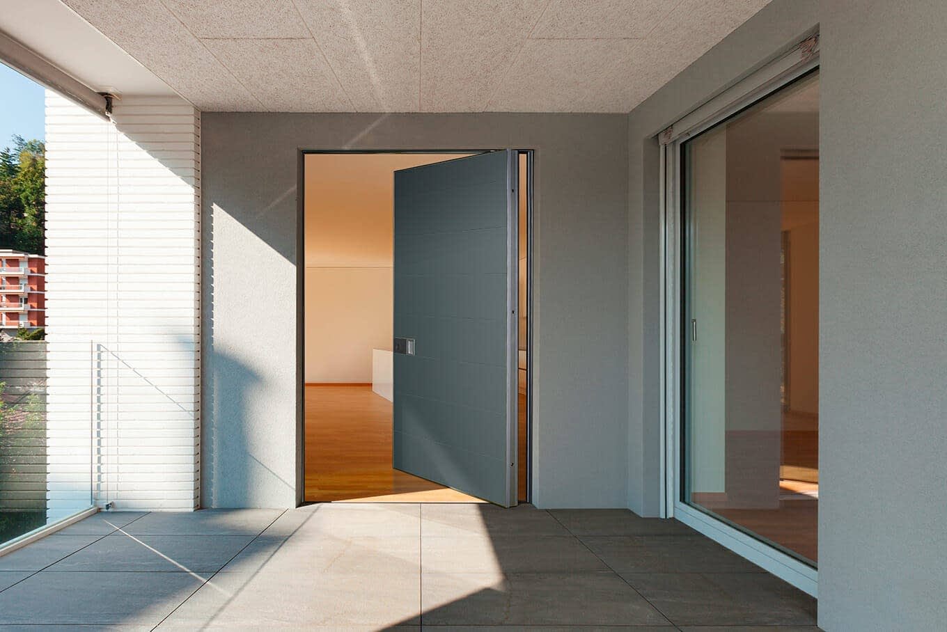 La puerta pivotante acorazada es una puerta que gira sobre un eje desplazado de la parte lateral del cerco.