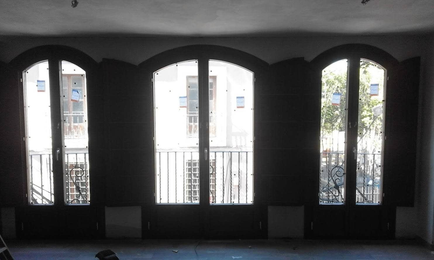 Realización de ventanas de arco rebajado de madera-aluminio en una casa rural en las inmediaciones de Sigüenza con contra-ventanas en la parte interior.